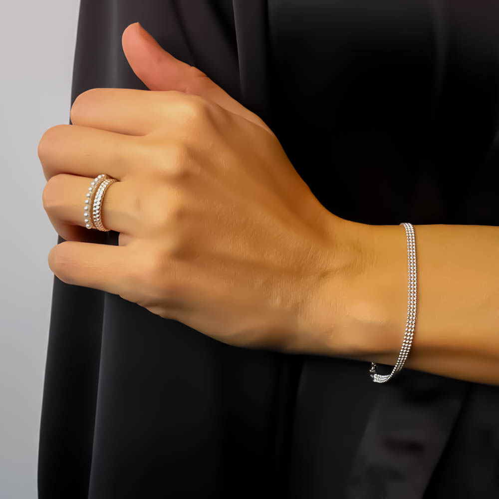 Zeitlos und aufregend ist dieses tolle Kugelarmband aus 925 Sterling Silber. Es besteht aus drei aneinander gereihten Kugelketten und ist ein absoluter Blickfang an Deinem Handgelenk.